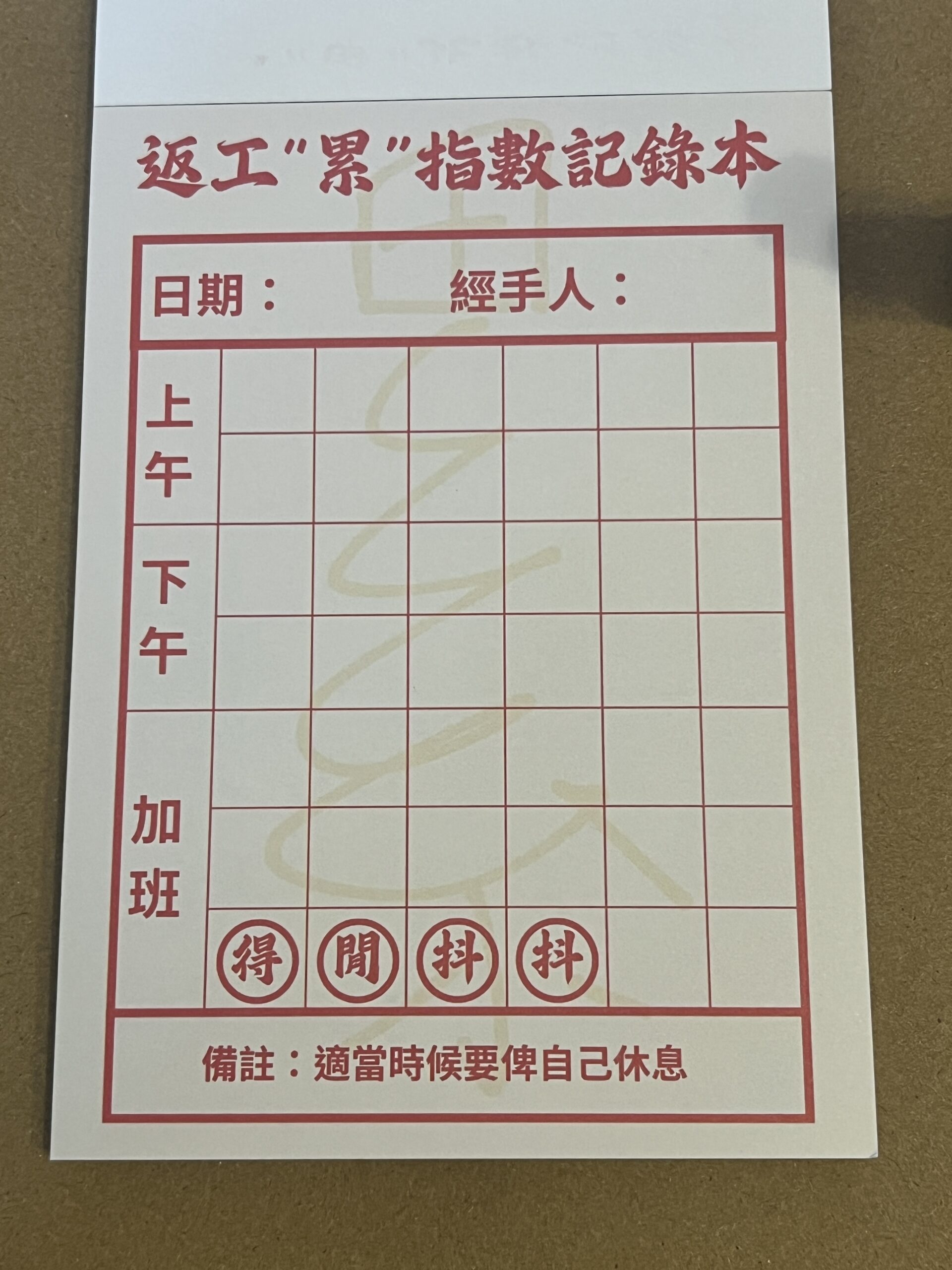💟返工”累”指數記錄本